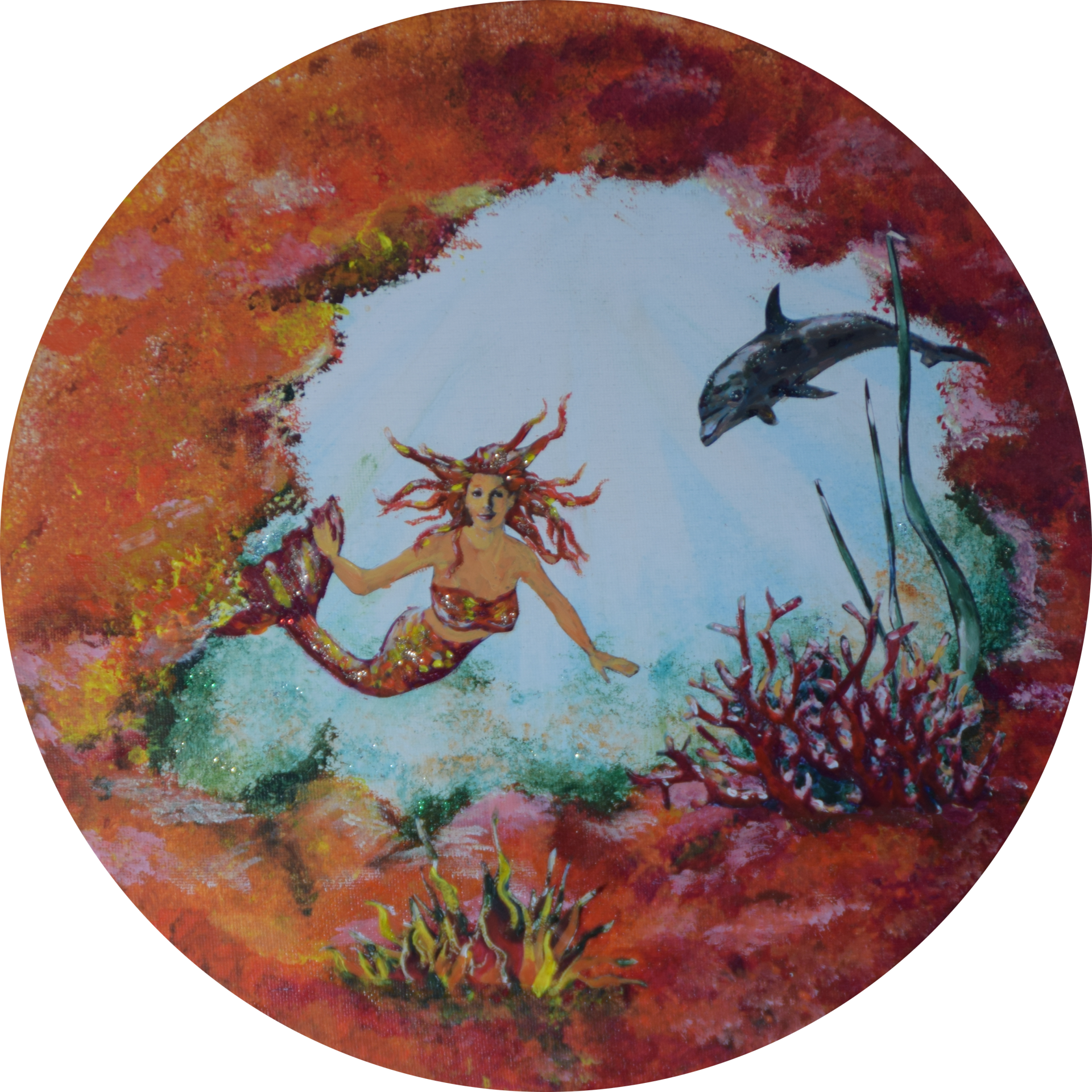 Mixed media op rond canvas.